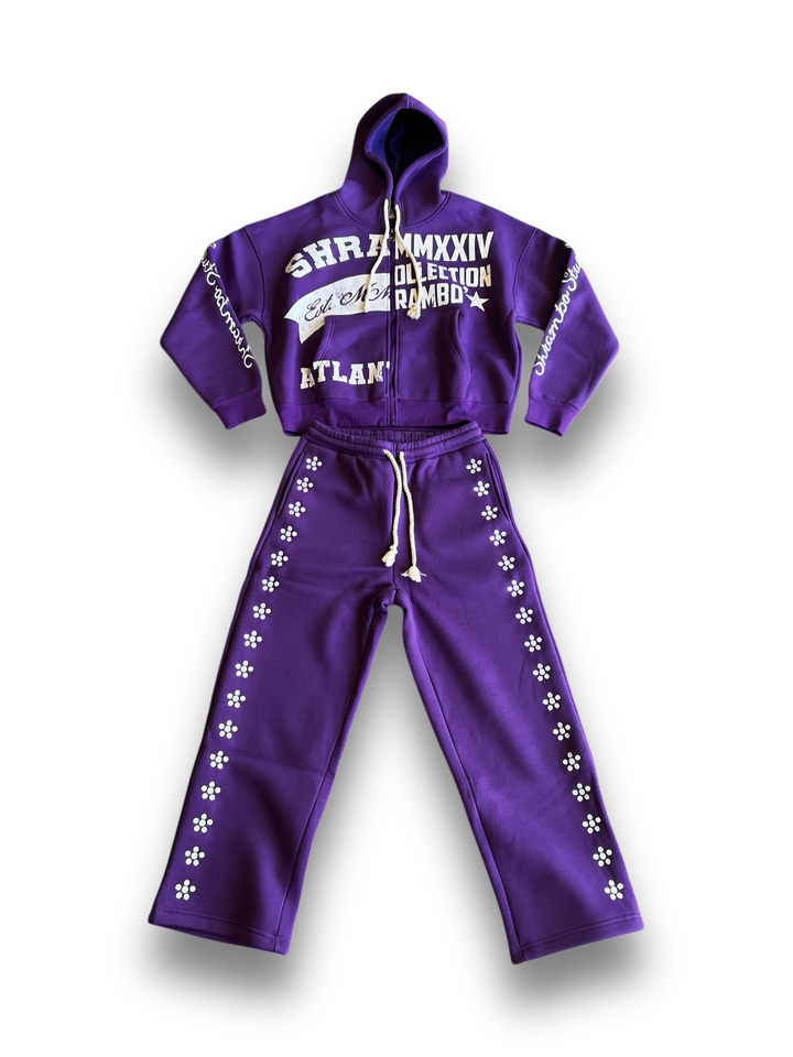 PURPLE “UNIVERSITY” ZIPUP SETS